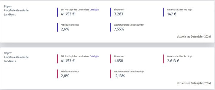 - Direkter Vergleich zweier Gebietskörperschaften möglich.