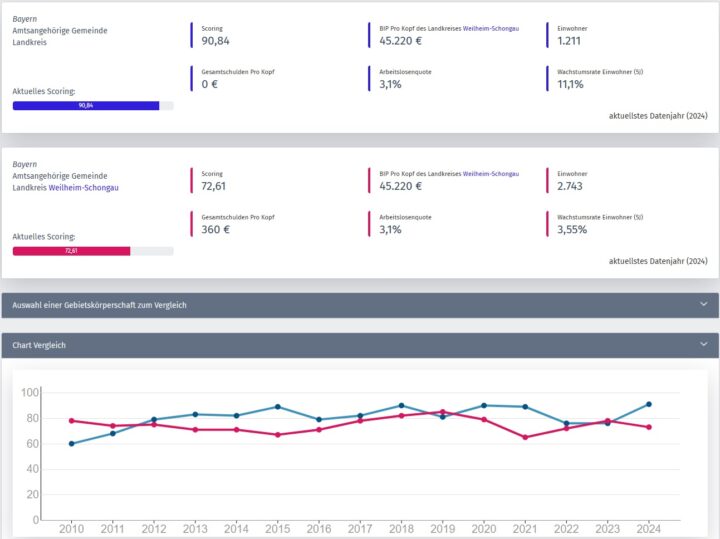 - Direkter Vergleich zweier Gebietskörperschaften möglich.